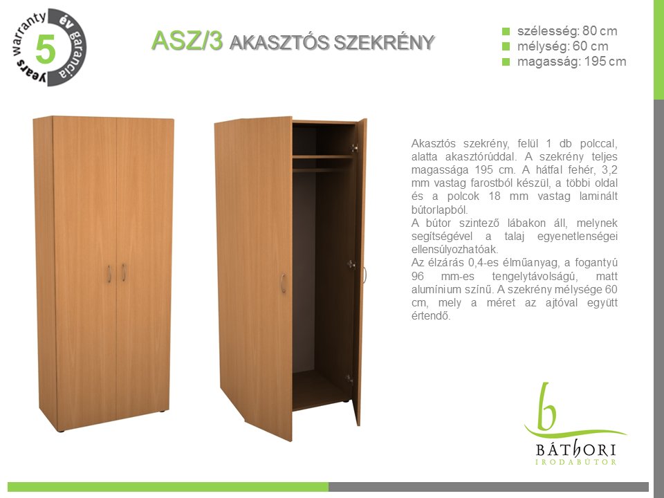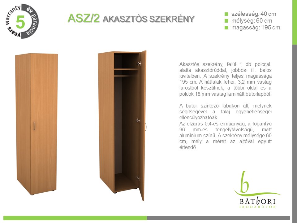 ASZ1: 195*80*40 cm, kihúzható akasztórúddal