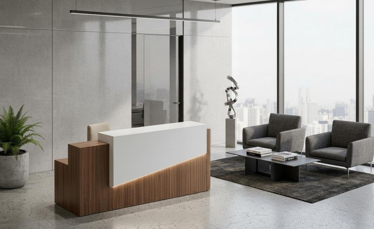modern recepciós pult design irodai recepció bútor elegáns minimalista ügyfélfogadó térbe