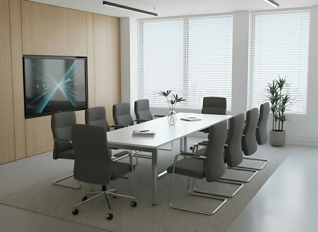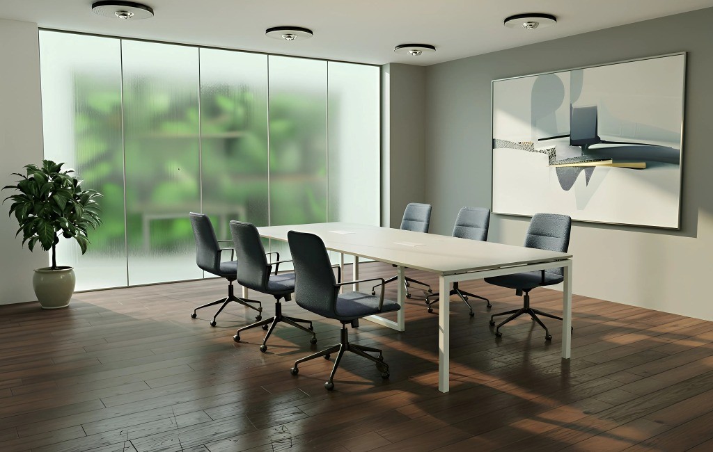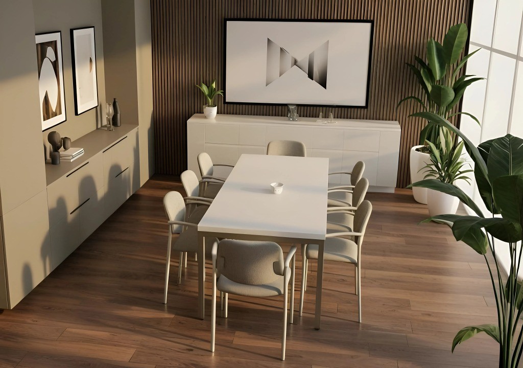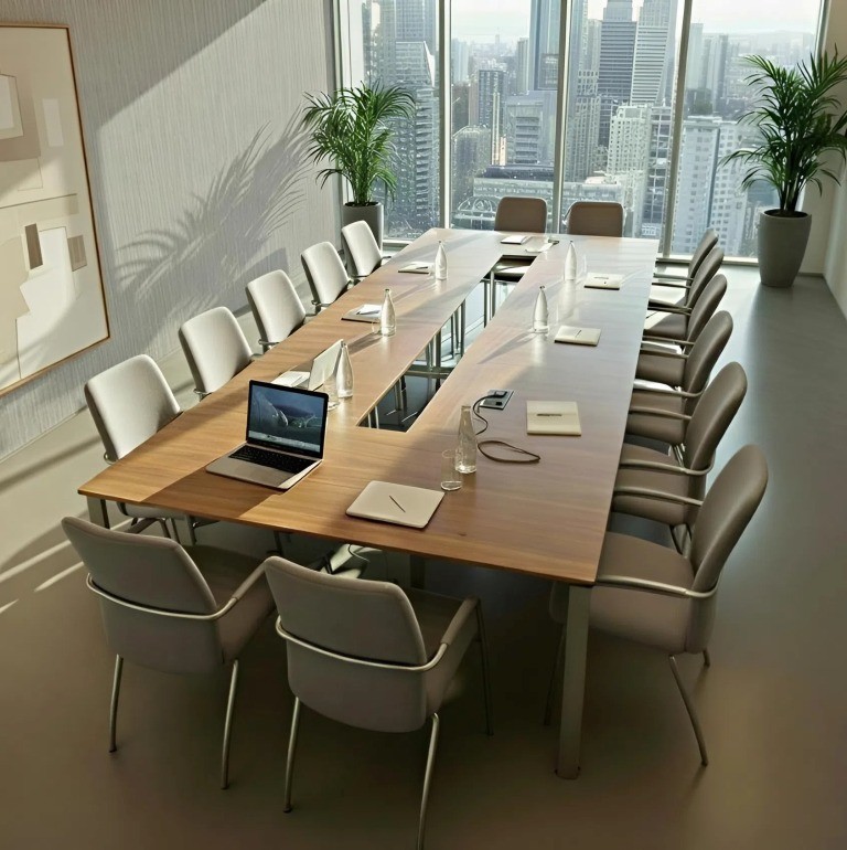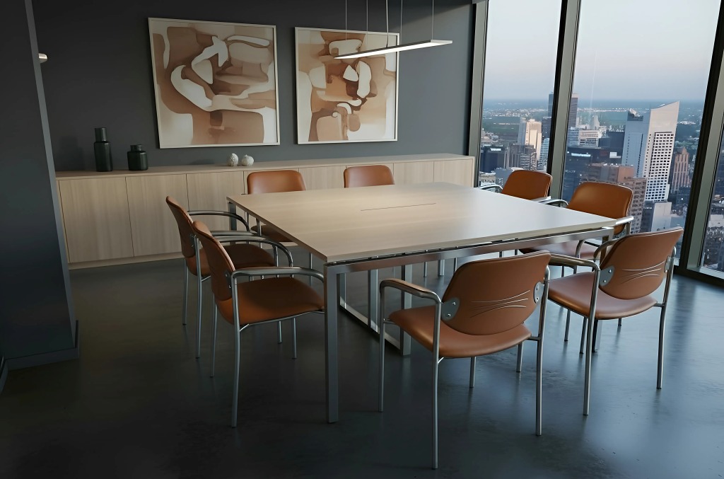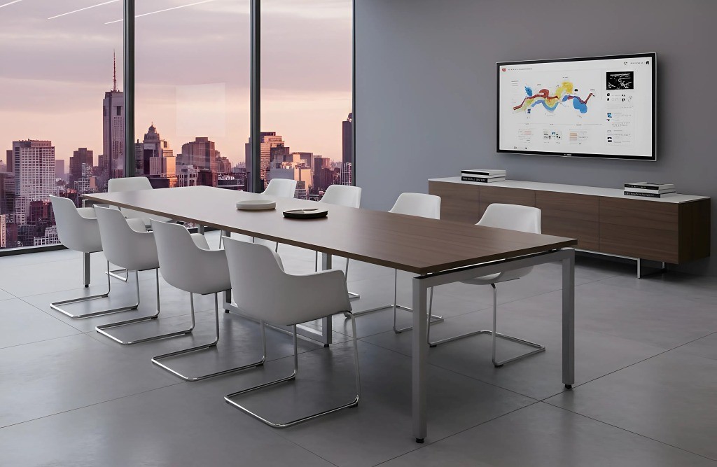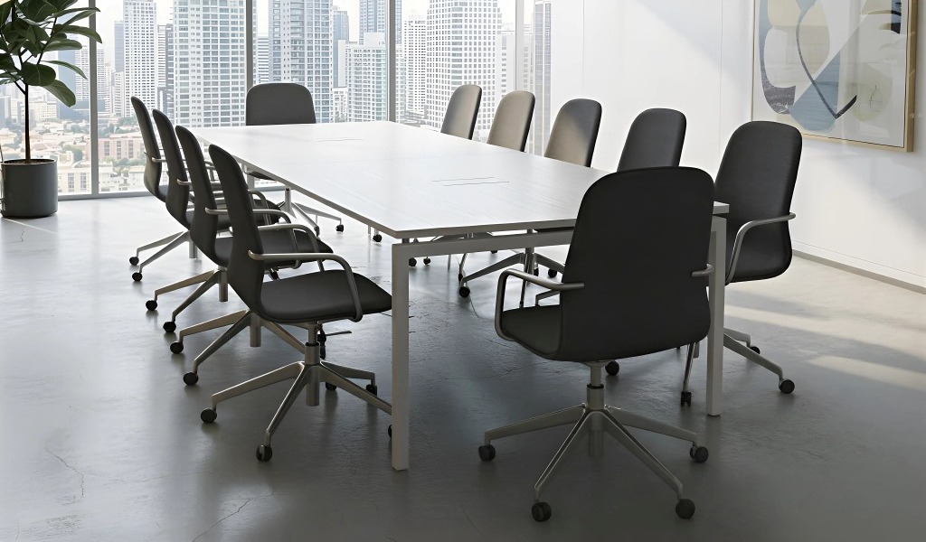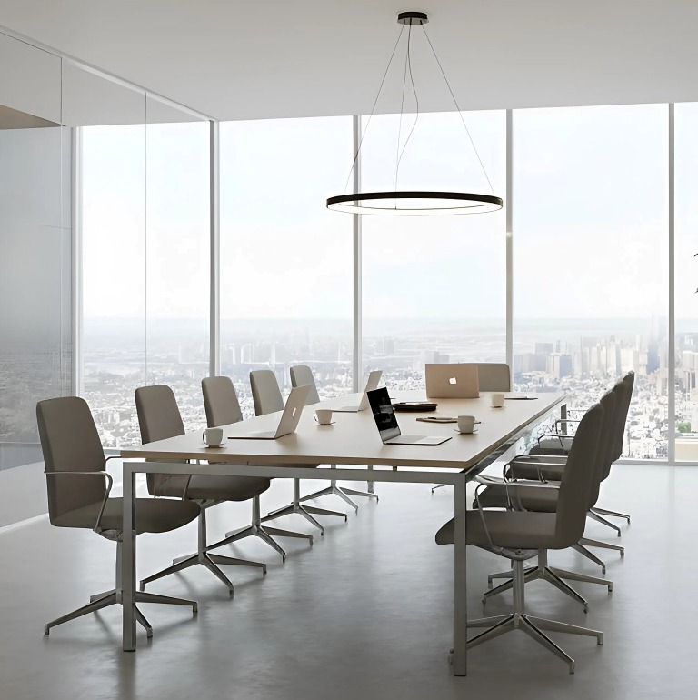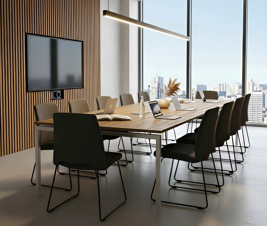 A NEDAL hasábláb-szerkezet egy rendkívül stabil, merevített megoldás, amely sokféle színben – fekete, fehér, antracit, homokszín, ezüst, sőt egyedi színekben is – rendelhető. A láb szintezhető, és tetszőleges méretű asztalkombinációk kialakítására alkalmas, így akár U alakú tárgyalóasztalok is létrehozhatók különböző szögletes lapok összeillesztésével. Az üvegbetét lehetőség további eleganciát ad, és nagy tárgyalókba is ideális. Mivel ugyanezzel a lábszerkezettel operatív munkahelyek is kialakíthatók, az iroda egységes megjelenést kap, hiszen a tárgyalóasztal és a munkaterületek designja is ugyanaz.