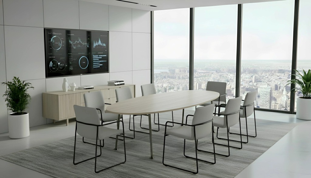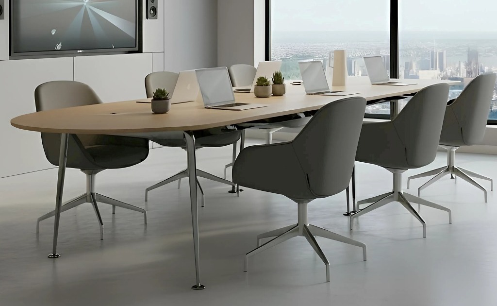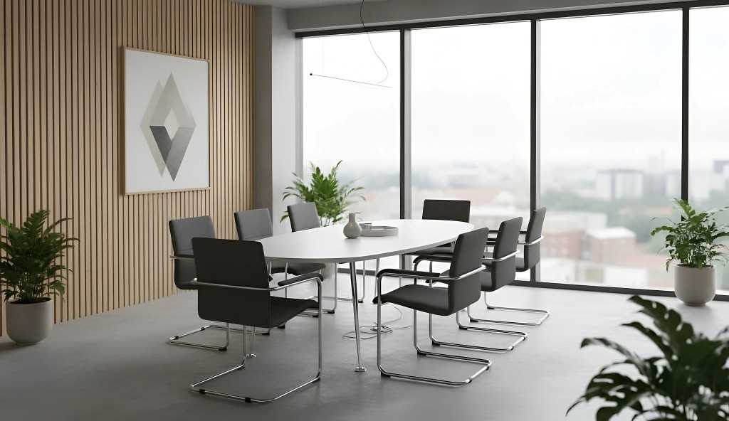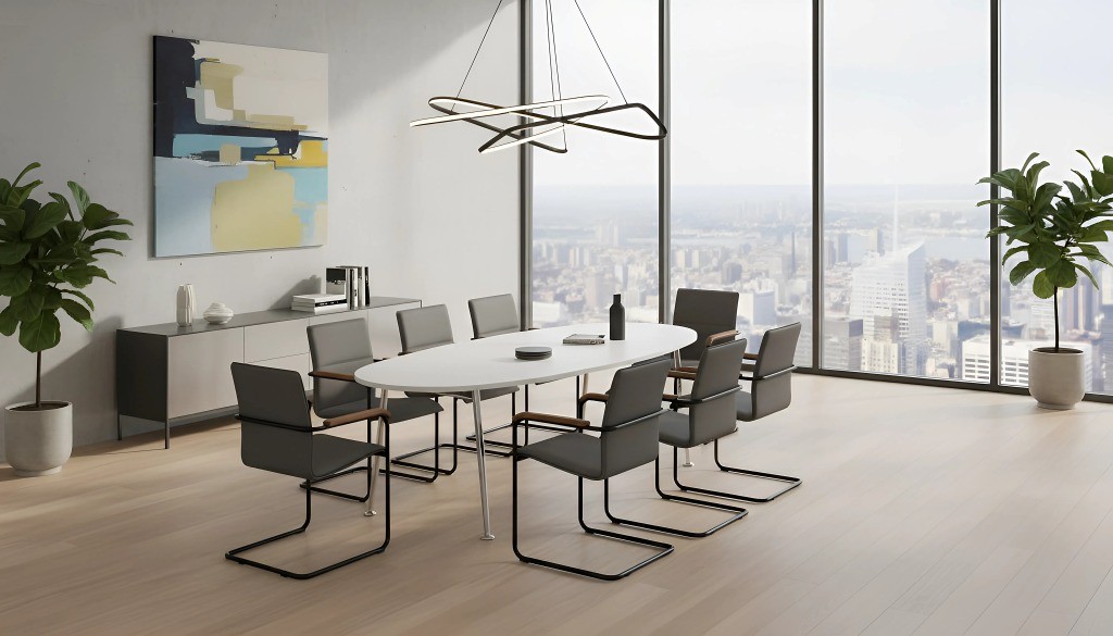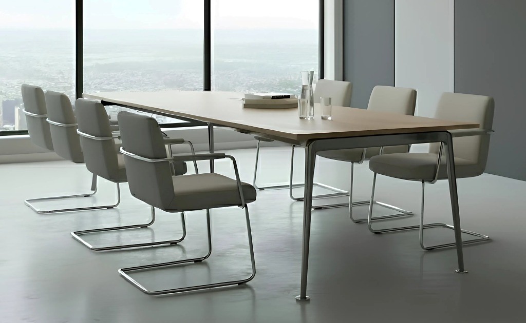 A NOBLE fémláb-szerkezet egy elegáns és kecses megoldás, amely nemcsak operatív munkahelyekhez ideális, hanem variálható tárgyalóasztalok is könnyedén kialakíthatók belőle. Az egymáshoz illesztett szögletes munkaasztalokból akár U-alakú tárgyalókat is létrehozhatunk, és kerek asztallapokhoz is használható, így rendkívül sokoldalú. Az asztallap alatt futó merevítőnek köszönhetően a szerkezet nagyon stabil, és akár üvegbetétes tárgyalóasztalok is készíthetők vele. A NOBLE többféle színben – antracit, ezüst, fehér, fekete és króm – elérhető, így könnyedén illeszthető bármilyen irodai környezetbe.