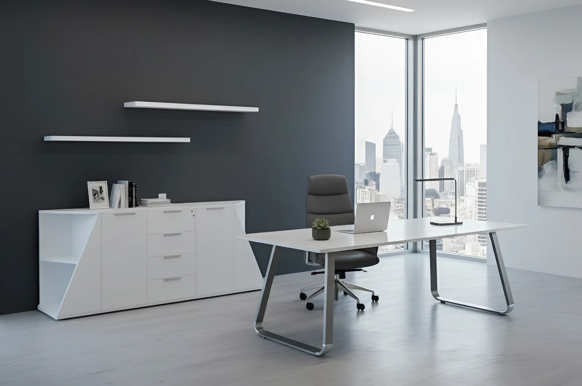Fedezze fel vezetői irodabútorainkat, melyek a kiváló minőség és a stílusos dizájn tökéletes kombinációját kínálják. Saját gyártásunknak köszönhetően rugalmasan alkalmazkodunk egyedi igényeihez, legyen szó speciális méretek vagy színek választásáról. Modern trendeket követve széles választékot biztosítunk, hogy a munkakörnyezet ne csak praktikus, hanem inspiráló is legyen. Az Ön igényeihez igazított irodabútorokkal segítünk, hogy a vezetői pozícióhoz illő eleganciát és funkcionalitást biztosítson munkahelyén.