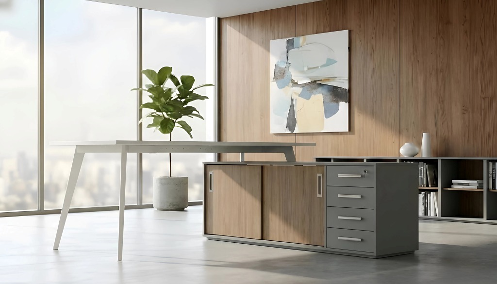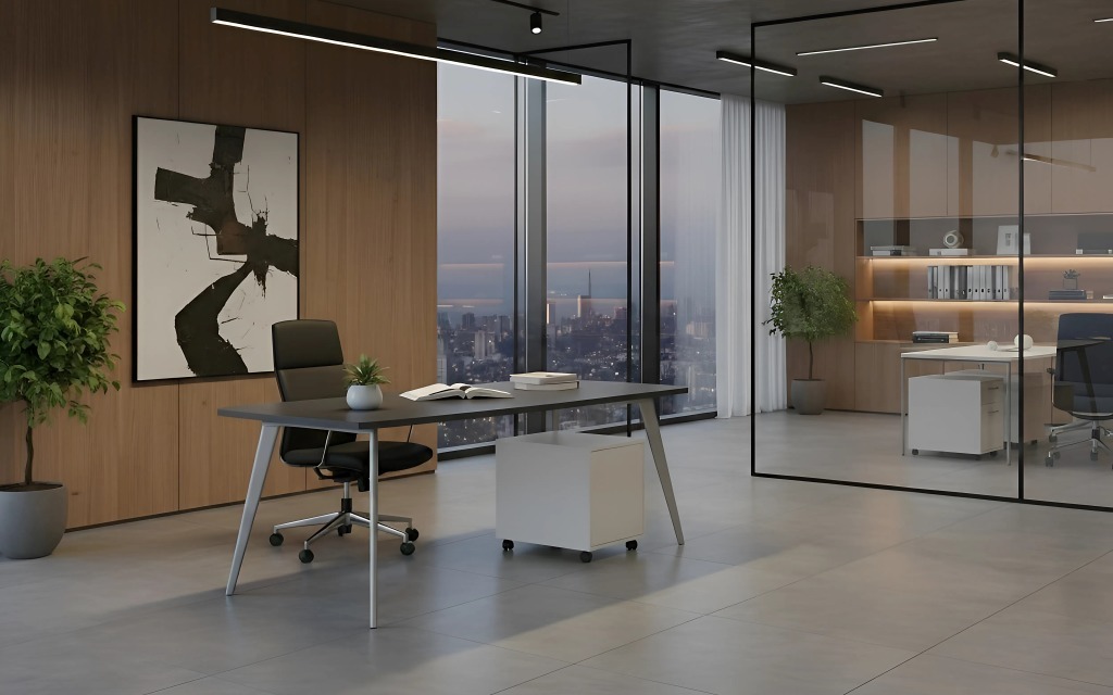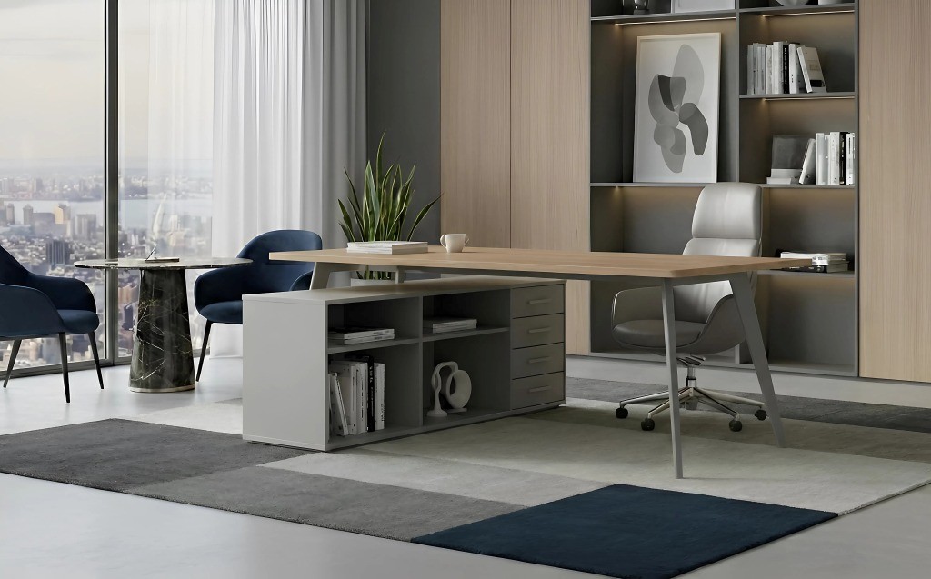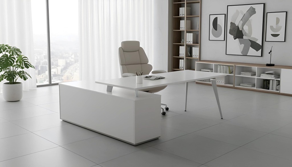 A Rea vezetői íróasztal egy modern, minimalista megjelenésű, prémium kategóriás vezetői irodabútor, amely letisztult formavilágával és karakteres fém lábszerkezetével emeli az igényes irodaberendezés színvonalát. REA vezetői íróasztal irodai környezetbenA stabil, dizájnos fém váz három színben rendelhető – ezüst, antracit és fehér –, így az asztal könnyen illeszthető különböző enteriőrökhöz és más irodabútor elemekhez. A Rea vezetői íróasztal kétféle kialakításban érhető el. A klasszikus verzió négy darab fém lábon áll, míg a Rea Half kivitel esetében az asztallap egyik oldala fém lábszerkezetre, a másik oldala pedig oldalszekrényre vagy fix négyfiókos konténerre támaszkodik. Ez az elegánsabb megoldás kifejezetten ajánlott reprezentatív vezetői irodákba. Kiegészítőként fix négyfiókos konténer, valamint többféle oldalszekrény választható. Ha egy sokoldalúan variálható, modern és elegáns vezetői irodabútort keres, töltse le katalógusunkat, ahol minden elérhető méretet, típust és műszaki adatot részletesen megtalál a Rea vezetői íróasztalhoz. |